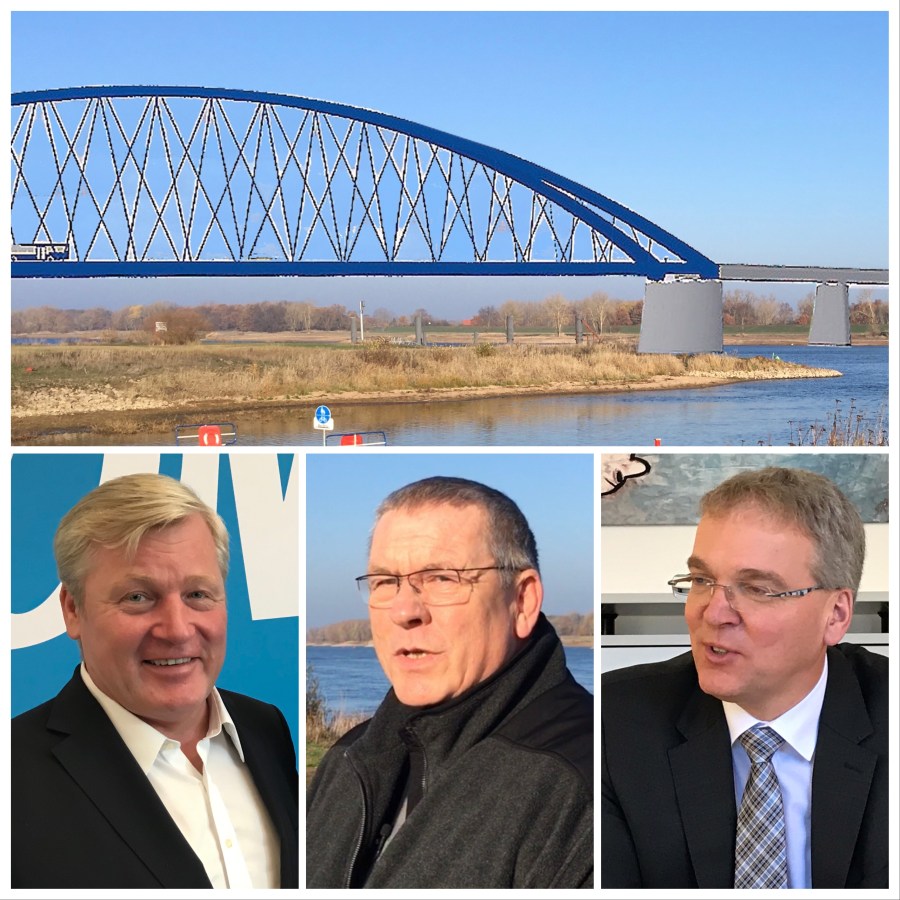 Die Elbbrücke bei Neu Darchau ist noch eine Vision. Verkehrsminister Bernd Althusmann (l.) hat den Anstoß für eine erneute Planung gegeben, weil er viel Geld in Aussicht stellt. Neu Durchaus Bürgermeister Klaus-Peter Dehde ist ein Gegner der Planung, Lüneburgs Landrat Jens Böther (r.) seit jeher ein glühender Brücken-Befürworter. Fotos: jj