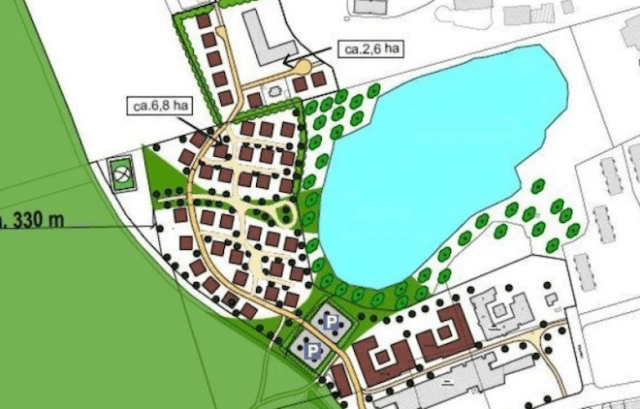 Ausschnitt aus dem Plan für den Digital-Campus Volgerhall mit Wohnen am Kalkbruchsee. Ein Plan für die Schublade. (Grafik Stadt Lüneburg)