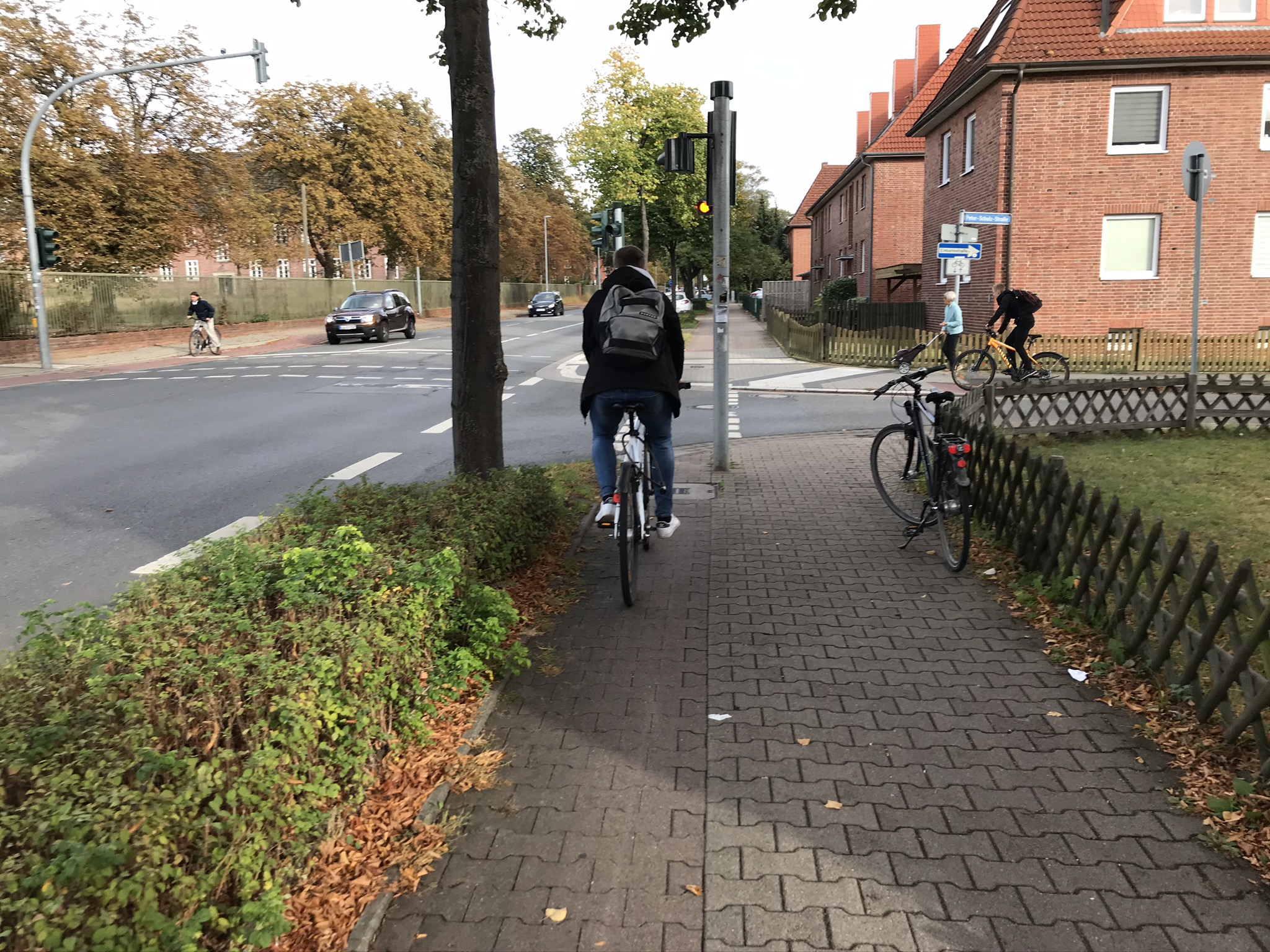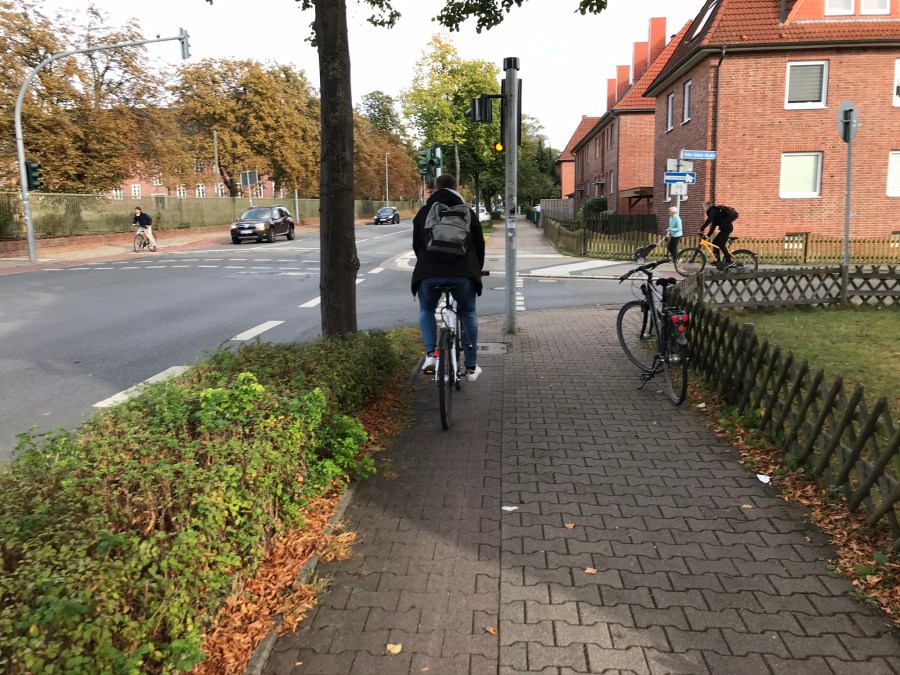 An der Ampel Bleckeder-Landstraße/Peter-Schulz-Straße/Horst-Nickel-Straße wird es stadtauswärts an der Ampel übel eng für Radfahrer.