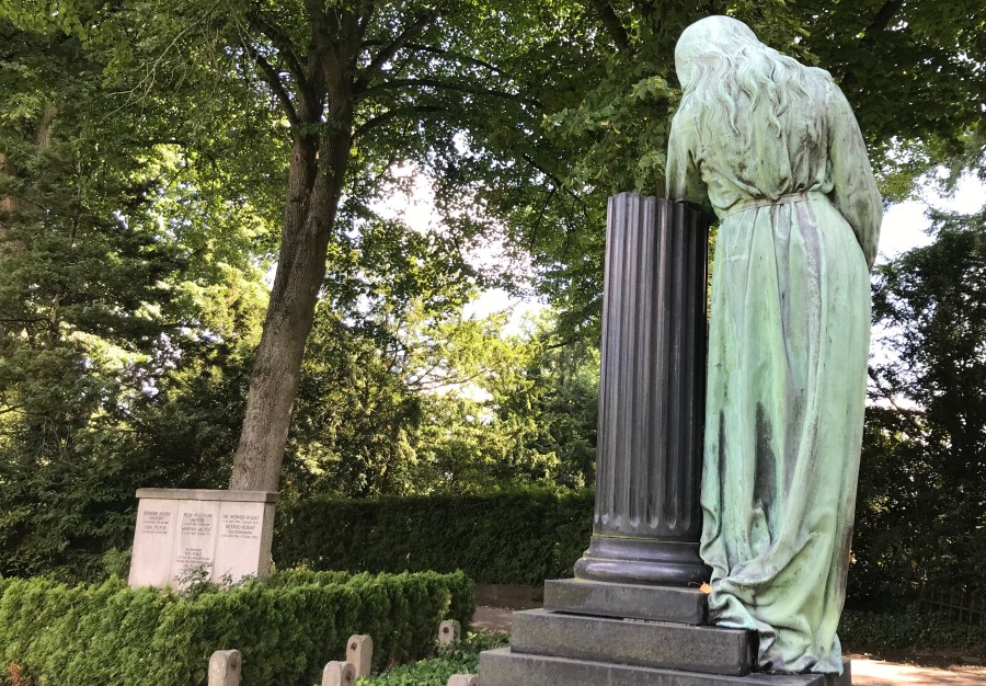 Die elegische Skulptur konturiert den Friedhof auf einer Anhöhe.