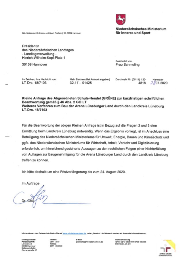 Antwort auf Arena-Anfrage des Grünen Detlev Schulz-Hendel