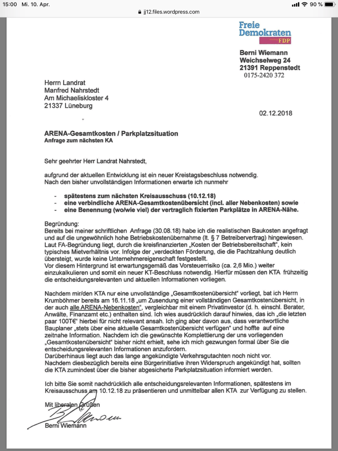 Anfrage Wiemann zur Arena vom 2. Dezember 2018