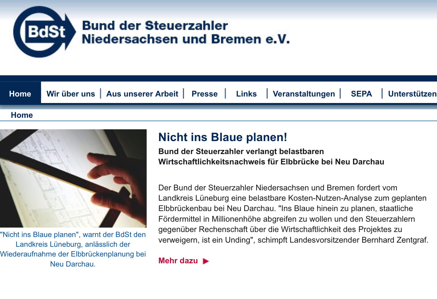Unter der Headline „Nicht ins Blaue planen!“ steht die Kritik des Bundes der Steuerzahler auf der Homepage.