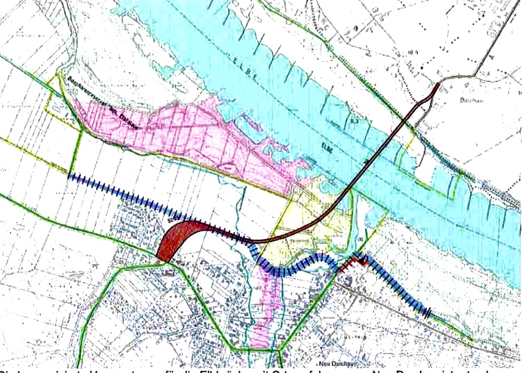 In der Zeichnung ist eine mögliche Vorzugstrasse rot eingezeichnet, die an die Landesstraße anschließt und durch den Ortsteil Katemin führt. Zeichnung: Raumordnungsverfahren LK Lüneburg