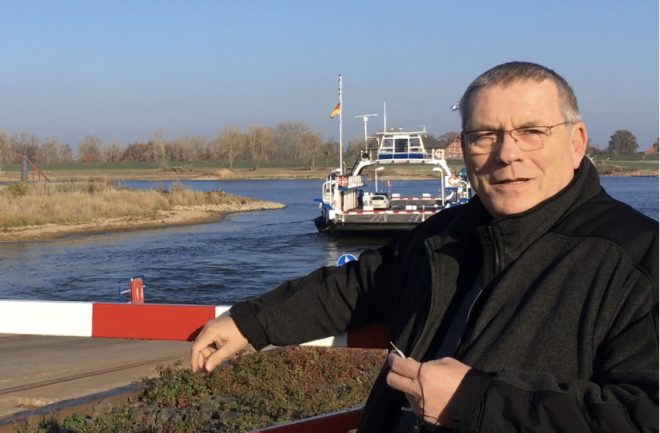 Bürgermeister Klaus-Peter Dehde steht an der Elbe, die Fähre Tanja legt ab. Der Landkreis Lüneburg will etwas stromabwärts bei Neu Darchau eine Brücke über den Strom schlagen. Dehde wäre eine bessere Fährverbindung lieber.