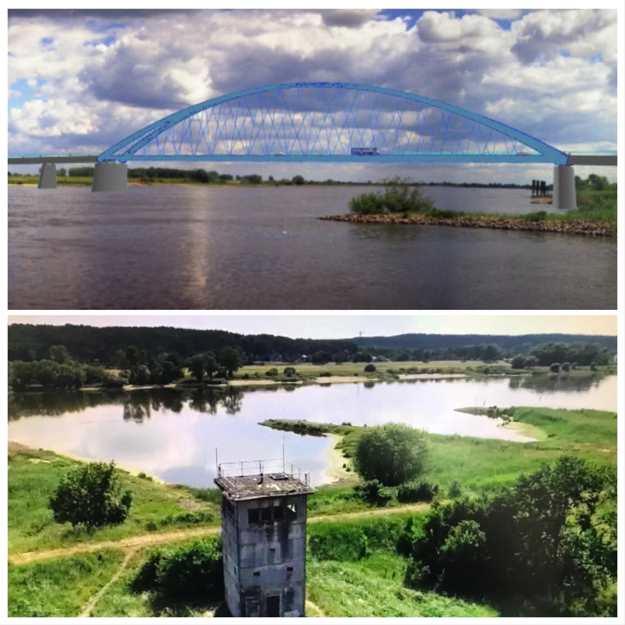 Die Elbtalaue bei Neu Darchau mit und ohne geplante Elbbrücke.