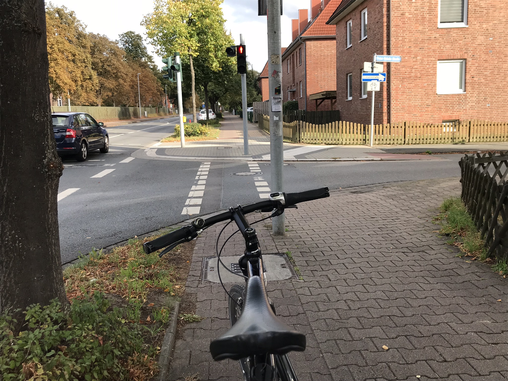 An der Ampel Bleckeder-Landstraße/Peter-Schulz-Straße/Horst-Nickel-Straße wird es stadtauswärts an der Ampel übel eng für Radfahrer.