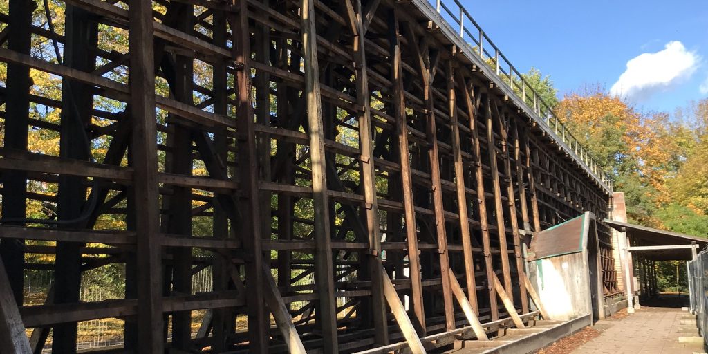 Das Holzgerippe des Gradierwerks im Kurpark. (Foto: jj)